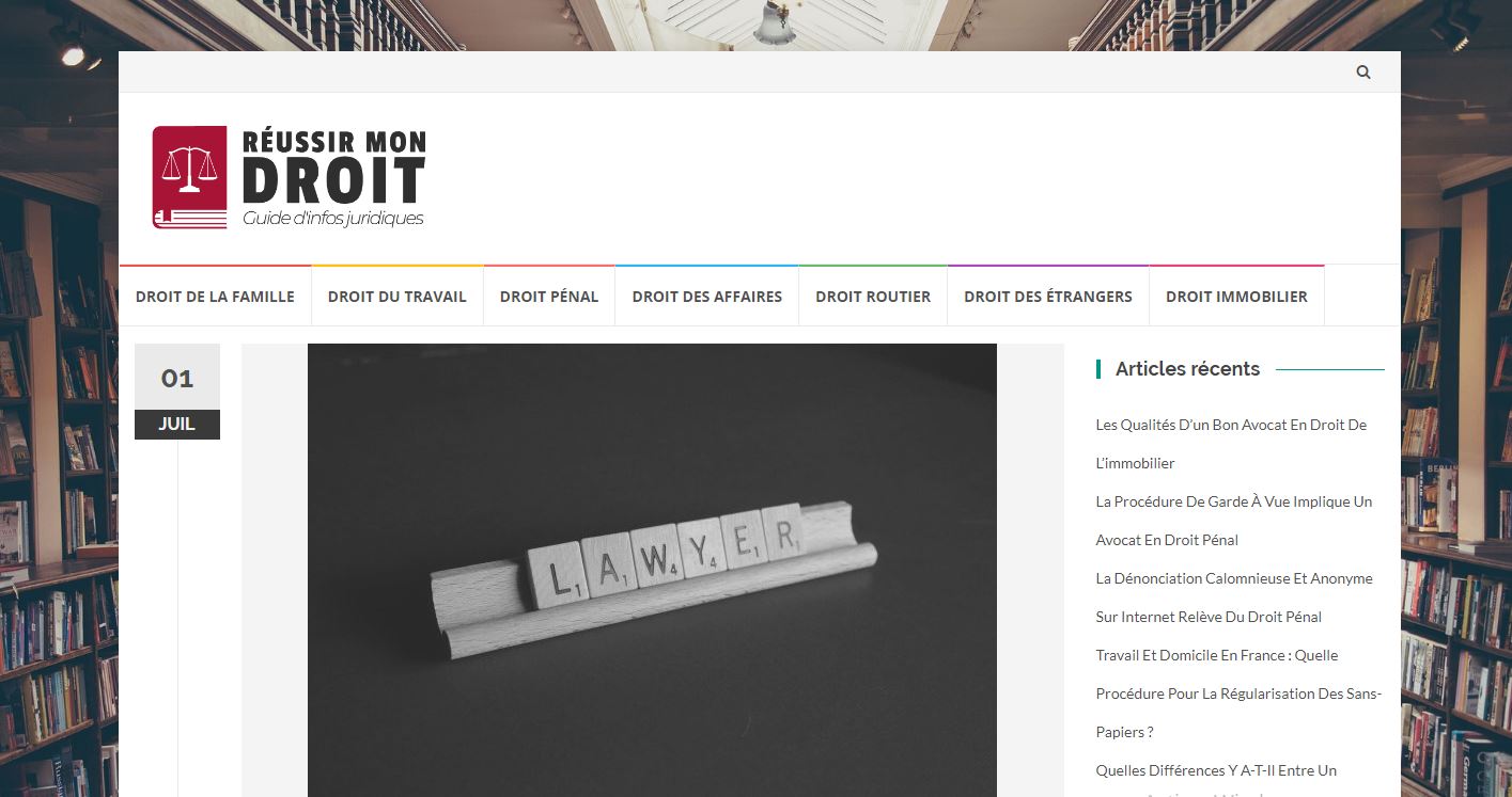 +0 place(s) Si vous souhaitez en apprendre davantage sur le droit (discipline réglementant la conduite de l’homme dans la société et les rapports sociaux), vous devez absolument consulter le blog reussirmondroit.com : le guide juridique fiable en ligne. Un g ...