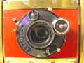 Appareil folding dit "Tropical" construit en aluminium brut verni et laiton nickelé, soufflet cuir rouge, décentrement, chassis magasin 9X12, objectif Jonte 7,5/140 sur obtu. Bausgh et Lomb