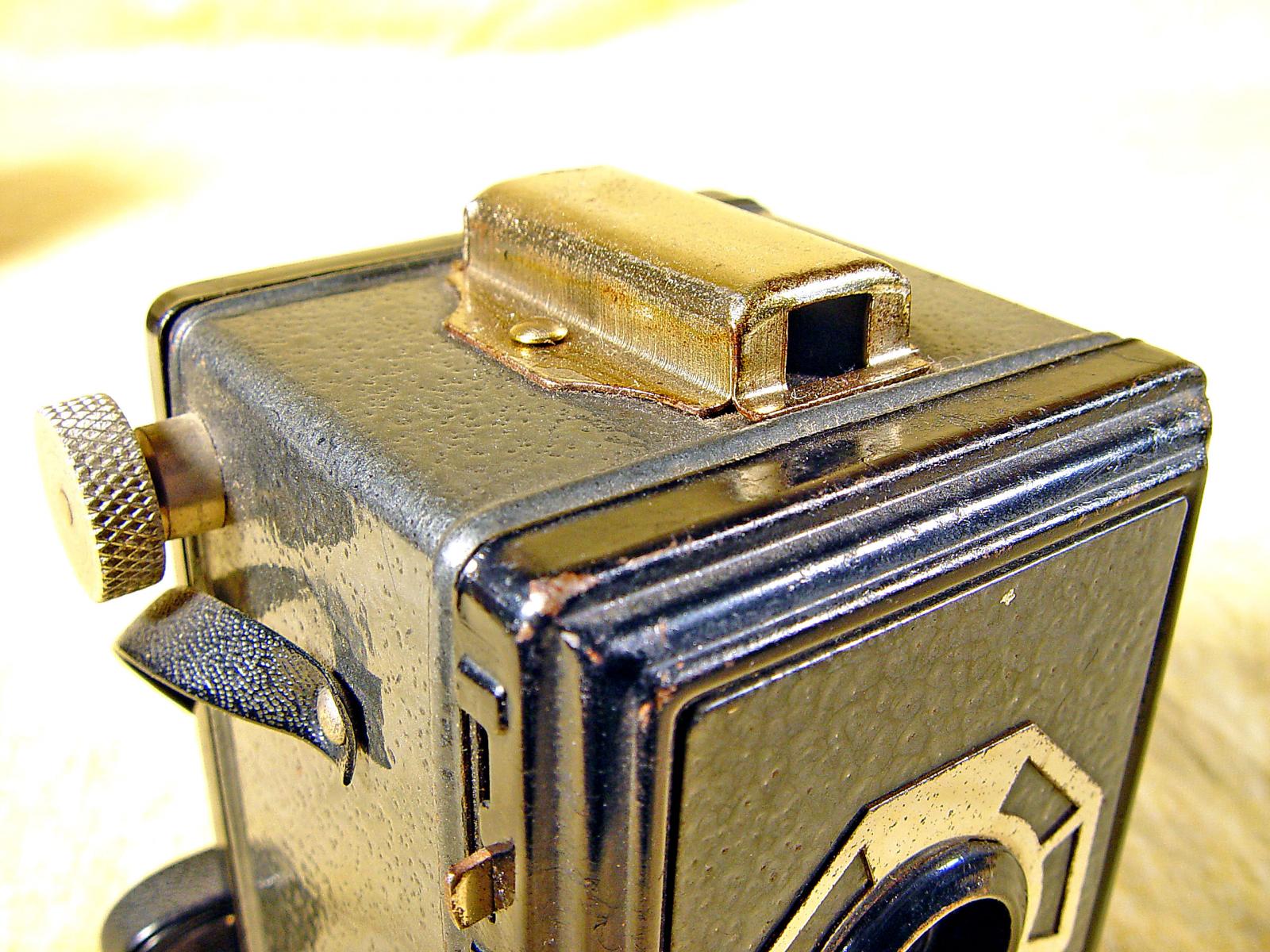 Détail partie supérieure de l'appareil ou l'on peut remarquer le viseur tubulaire rapporté sur l'appareil