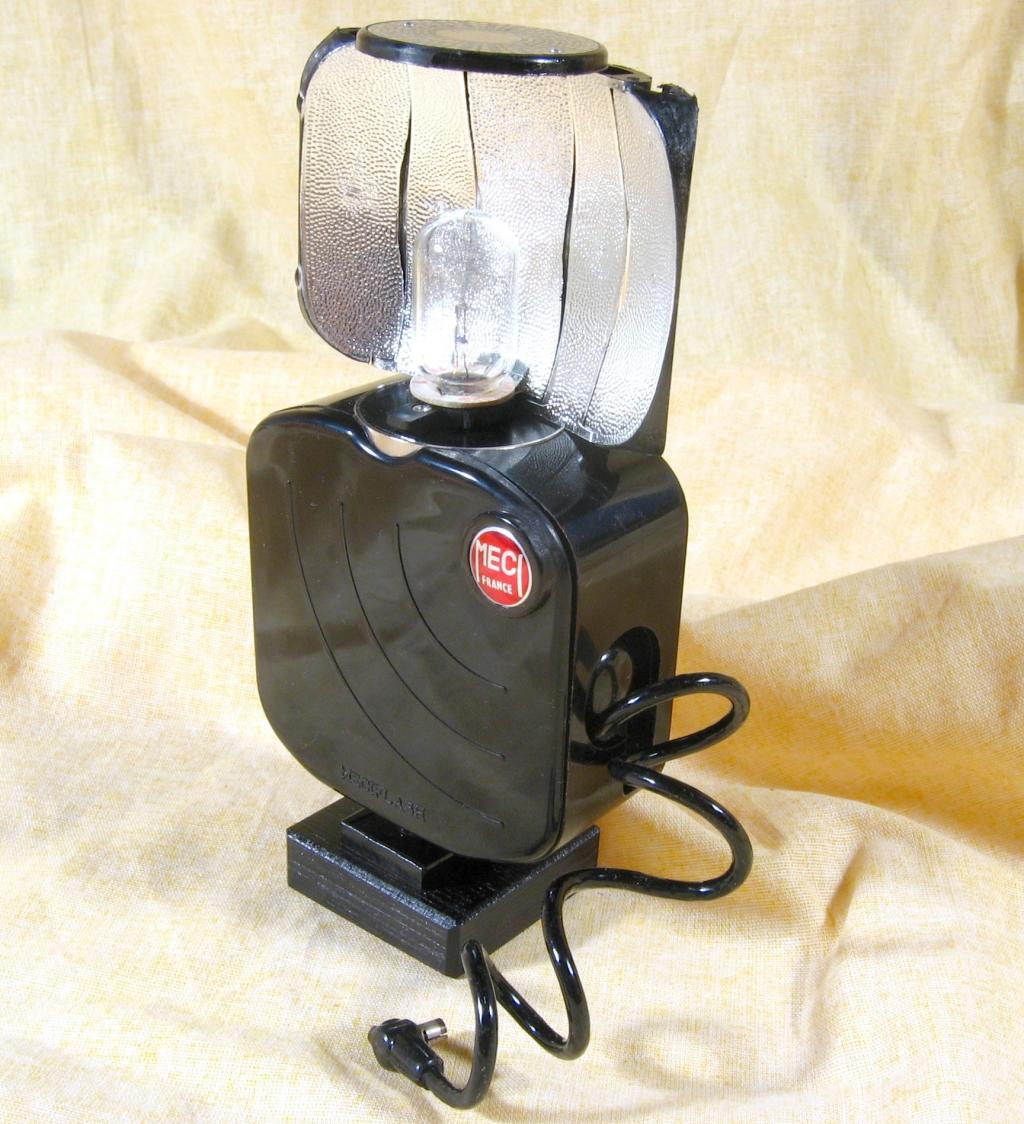 Flash à réflecteur rectangulaire repliable en trois parties et de forme tationnelle pour le format 24X36 il est fabriqué sur la base du flash escamotable monté sur le Mécilux France 1955 rareté 4/5