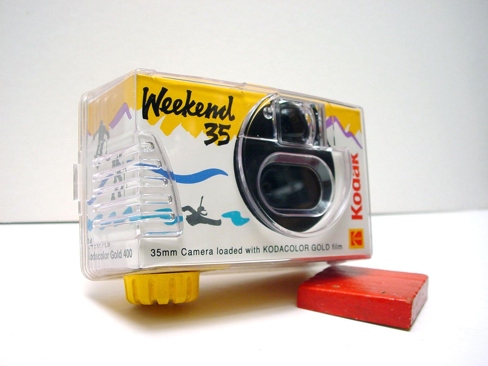 Appareil jetable type 35, images 24X36, chargé avec un film iso 400 pour 24 expositions, extérieur en matière plastique transparente, utilisation préconisée mer et montagne, tout temps